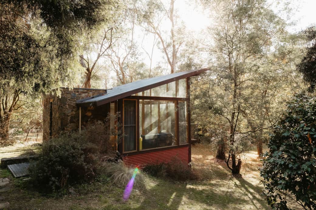 The main house, the bungalow, and the spaces between.The property includes the main house, which features three bedrooms and sleeps up to seven guests, two bathrooms, a fully equipped kitchen, an indoor fireplace, and Casa’s signature entryway sunroom — a favourite place to sit with morning light. Outdoors, the patio offers a BBQ, an outdoor bath that runs hot, and a sauna tucked into the landscape for slow evenings of warmth and rest. In addition, a separate bungalow sits ten metres from the main house, sleeping two guests and featuring its own bathroom with shower. In total, Casa Warrandyte sleeps up to nine guests, offering both togetherness and space to retreat.